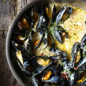 Mussels in garlic miso broth. This mussel recipe is a quick, easy, light and healthy take on a French bar-food classic. The mussels steam in the same pan as the miso broth in this effortless one-pan supper. Mussels are easy to make compared to most fresh seafood options, and ready in basically no time at all, they’re a weeknight dinner dream.